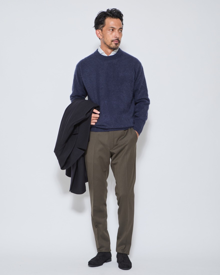 Rencontrantが掲げる「上質な普段着」の哲学を体現した、フォックスウールを贅沢に使用したクルーネックニット。