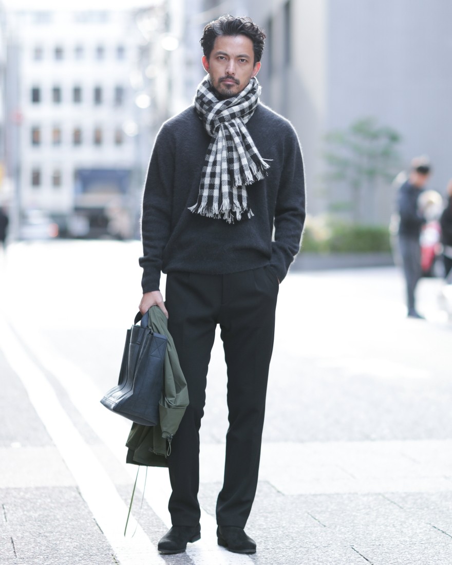 モデルサイズ:身長185cm/体重73kg/肩幅48㎝/胸囲95cm/ウエスト80cm/ヒップ96cm 着用サイズ:L