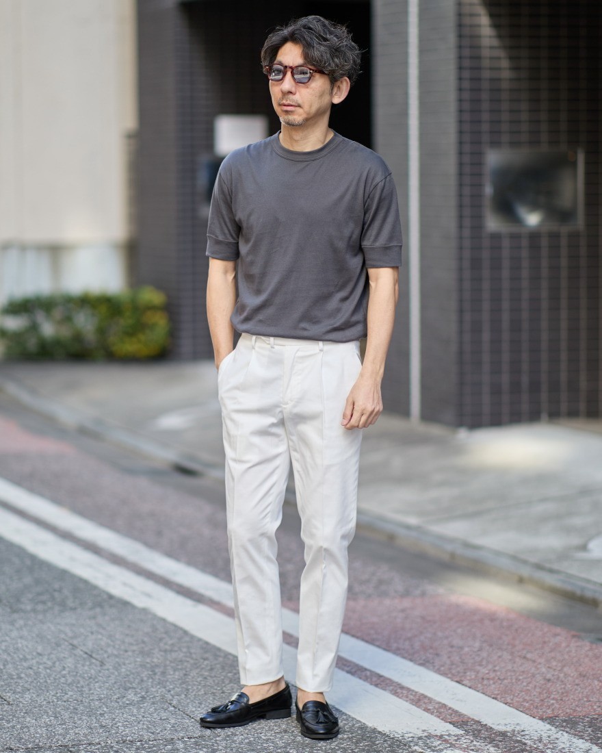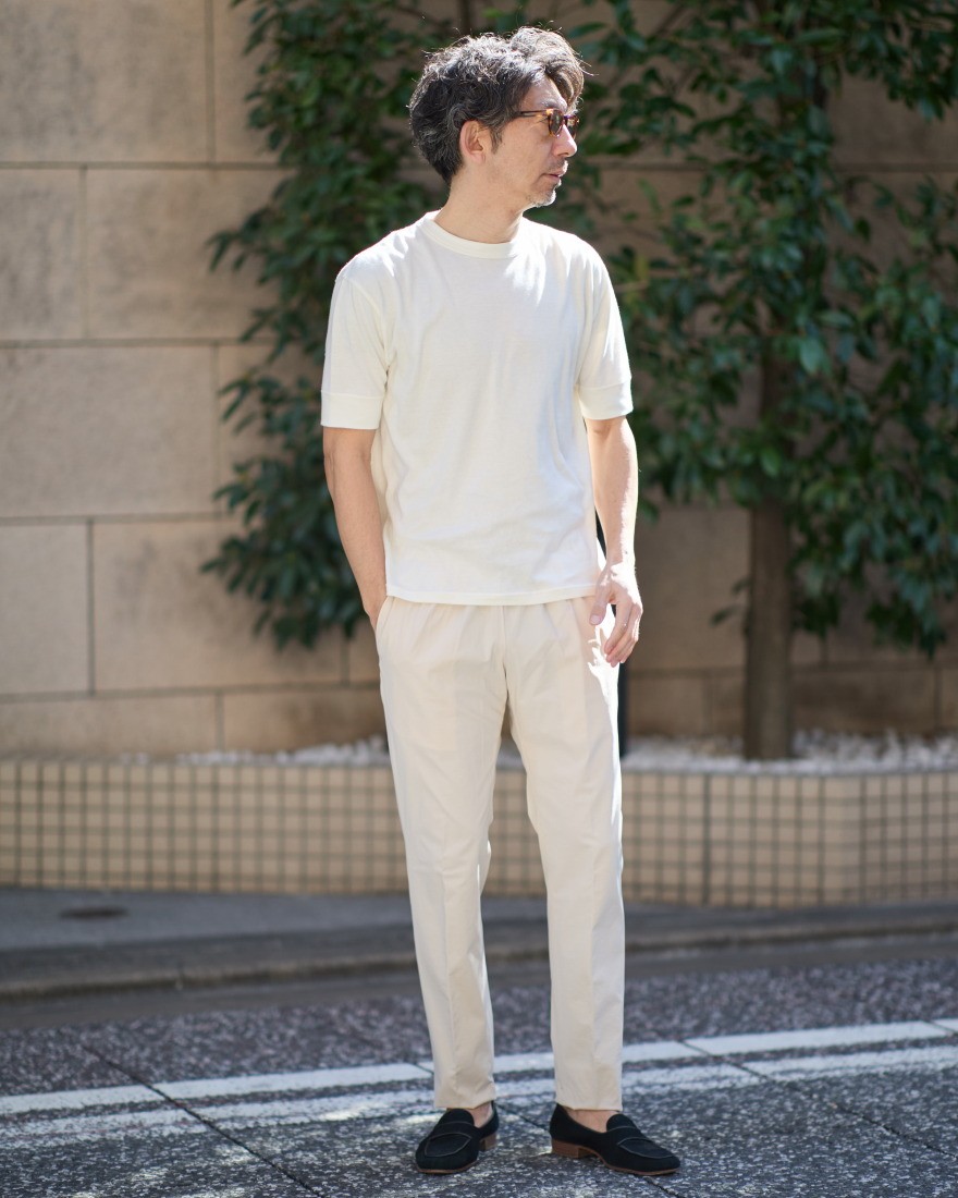 新進気鋭のカットソーブランドBONFILのクルーネックTシャツ。コットンをベースにカシミヤをブレンドした素材は、ほんのりとした光沢と軽やかなタッチが特徴です。とろみのある薄手の柔らかな風合いは、まさに極上の着心地。