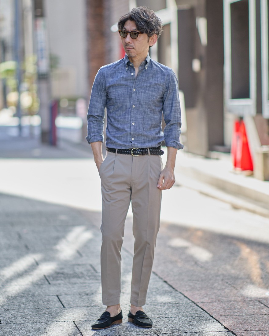 ・コットンシャンブレー特有のさらりとした質感とハリのある生地感
