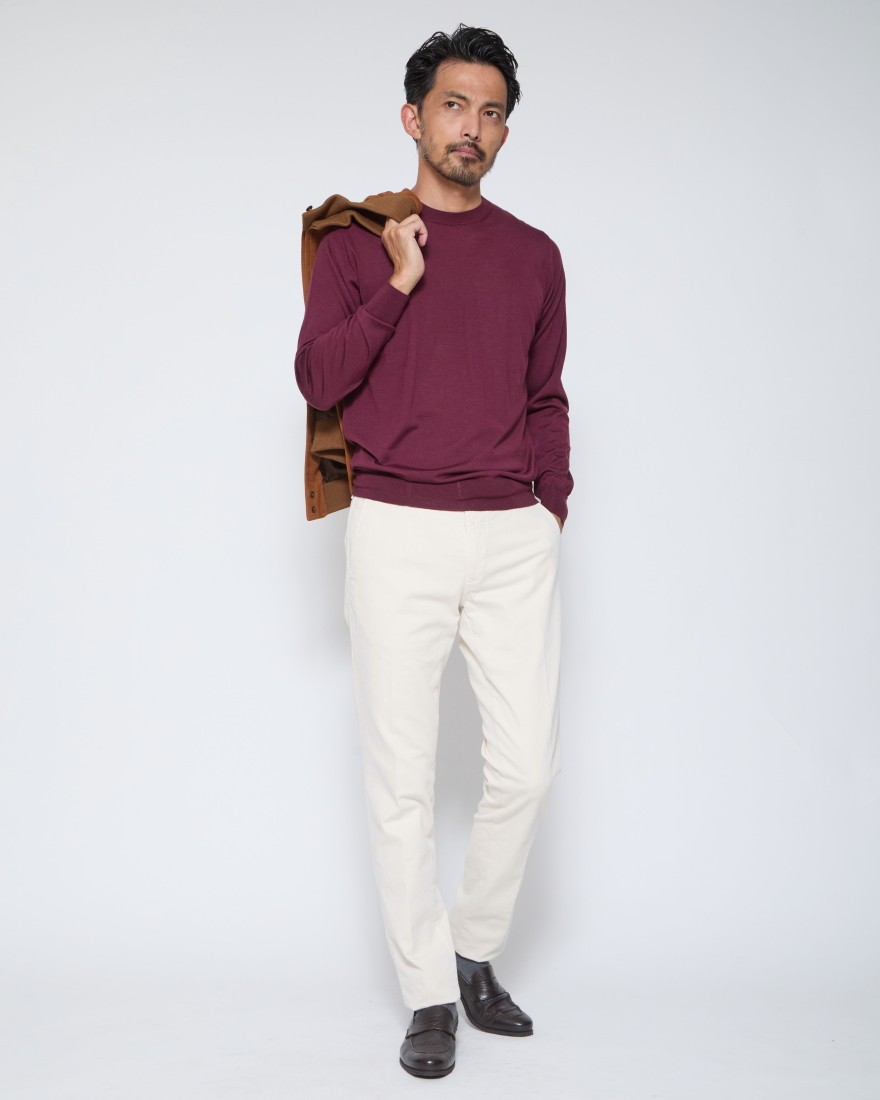 そのシルエットは、タイトすぎず緩すぎない絶妙なバランスを追求したスリムフィット。イタリアンコーデとはこうあるべきという理想像に限りなく近い、クセのない端正な仕上がりが魅力です。