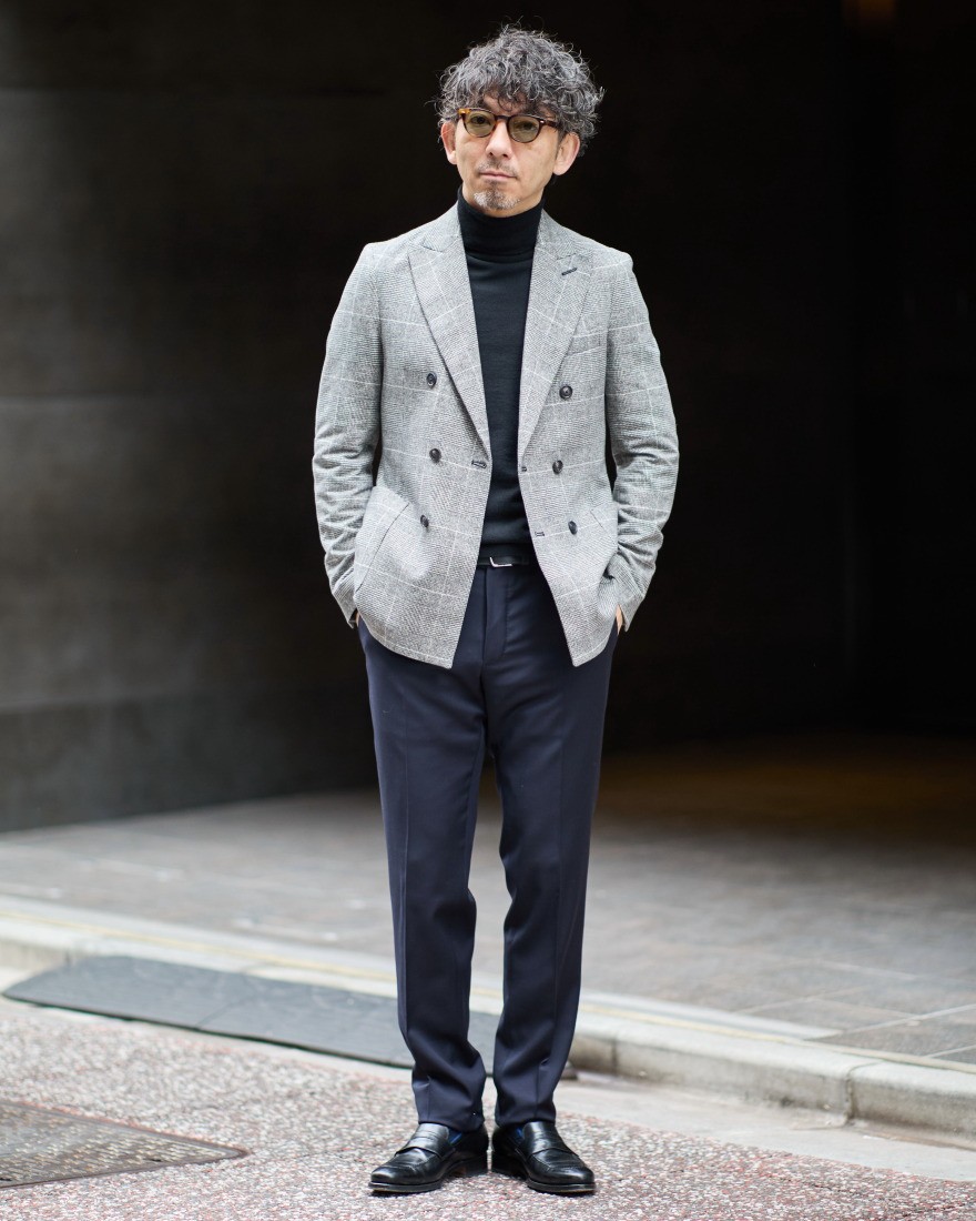 モデルサイズ:身長185cm/体重73kg/肩幅48㎝/胸囲95cm/ウエスト80cm/ヒップ96cm 着用サイズ:50