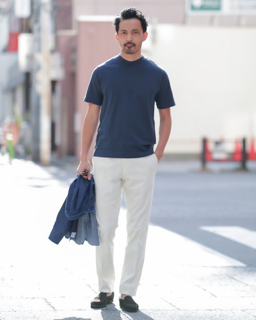 モデルサイズ:身長185cm/体重73kg/肩幅48㎝/胸囲95cm/ウエスト80cm/ヒップ96cm 着用サイズ:50