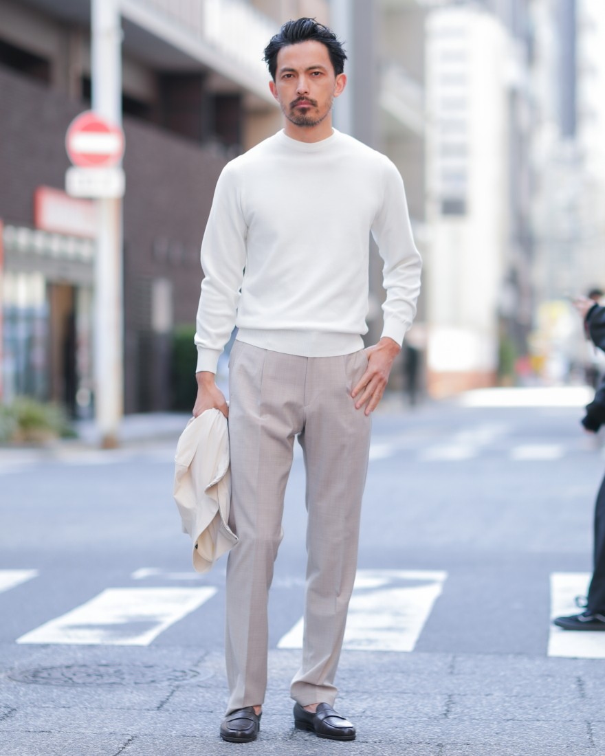 スラックスとしての端正な表情を持ちながら、リラックスした穿き心地と手入れのしやすさを両立。ビジネスシーンから休日のプライベートまで、あらゆるシーンで日常に寄り添う万能な一本です。