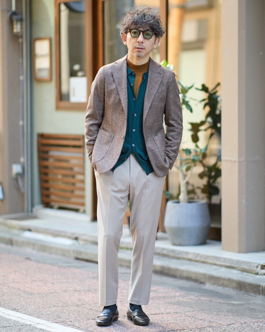 生地には、ウールを70%も贅沢に使用した高機能素材を採用し、ウールならではの気品ある光沢と美しいドレープ、先染めによる深みのある色合いがスラックスとしての品格を際立たせています。見た目の上質さとは裏腹に、ポリエステルとポリウレタンの混紡により、防シワ性・耐久性に加え、抜群のストレッチ性を実現。まるでジャージーのようなストレスフリーな穿き心地です。さらに、ご家庭での洗濯が可能なマシンウォッシャブル仕様も嬉しいポイント。出張や旅行にもシワを気にせず持ち運べ、汗や汚れも気軽に洗える、まさに現代の大人に最適な高機能パンツです。