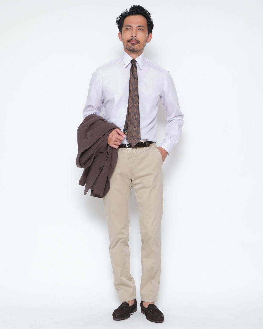 製品染めの自然な風合いと美しいシルエット。ストレッチ性も備え、オンオフ活躍するINCOTEXの定番ドレスチノ