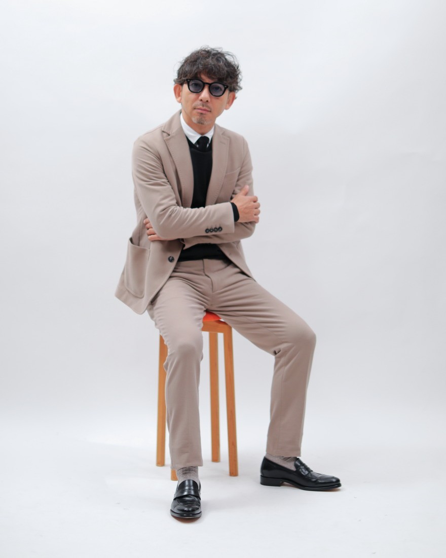 モデルサイズ:身長185cm/体重73kg/肩幅48㎝/胸囲95cm/ウエスト80cm/ヒップ96cm 着用サイズ:48