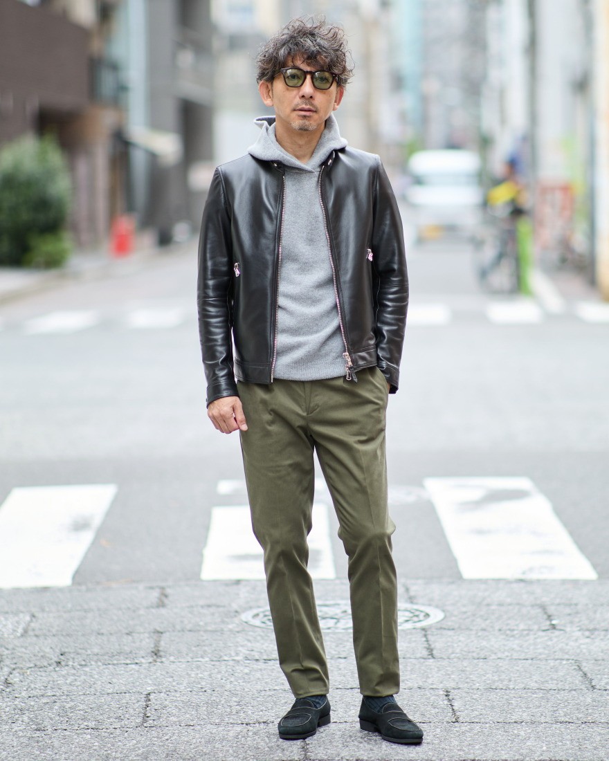 モデルサイズ:身長185cm/体重73kg/肩幅48㎝/胸囲95cm/ウエスト80cm/ヒップ96cm 着用サイズ:48
