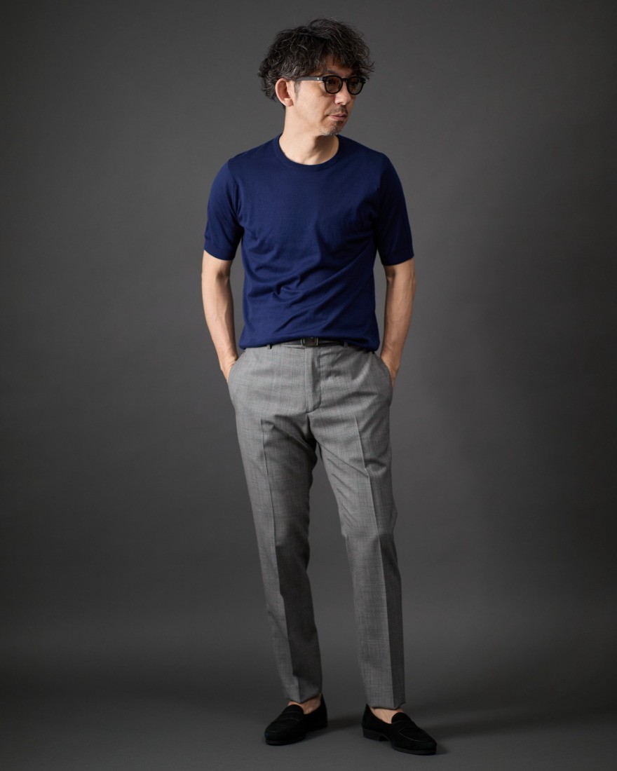 モダンなグレンチェックで知的に。サマーウールの心地よいドライ感で、装いを格上げる一本