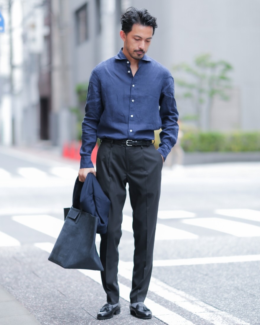 素材には、ウールにテック素材の機能性を融合させたテクノトロピカルを採用。軽やかで通気性に優れたドライタッチな質感で、汗ばむ季節も快適さをキープします。さらにシワになりにくく、ウォッシャブル仕様で扱いやすい素材のため、長時間の移動や日常的なビジネスシーンにも最適です。