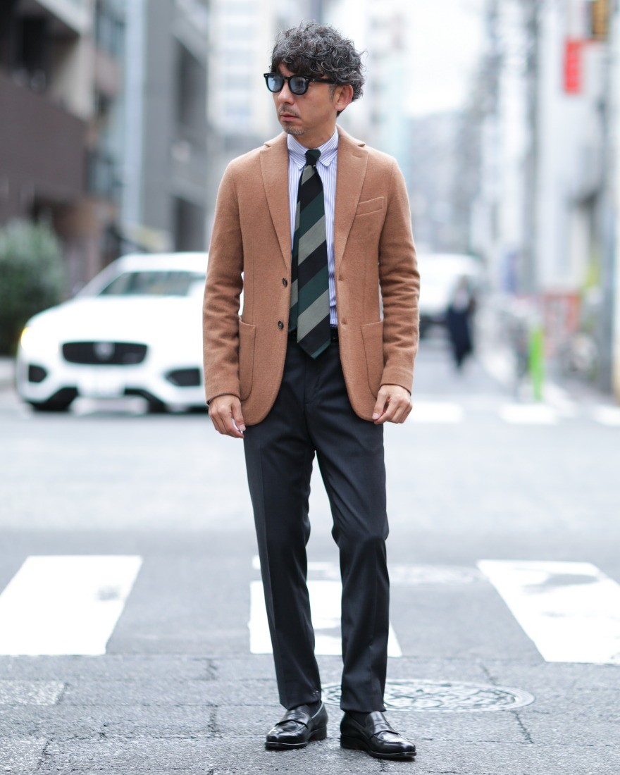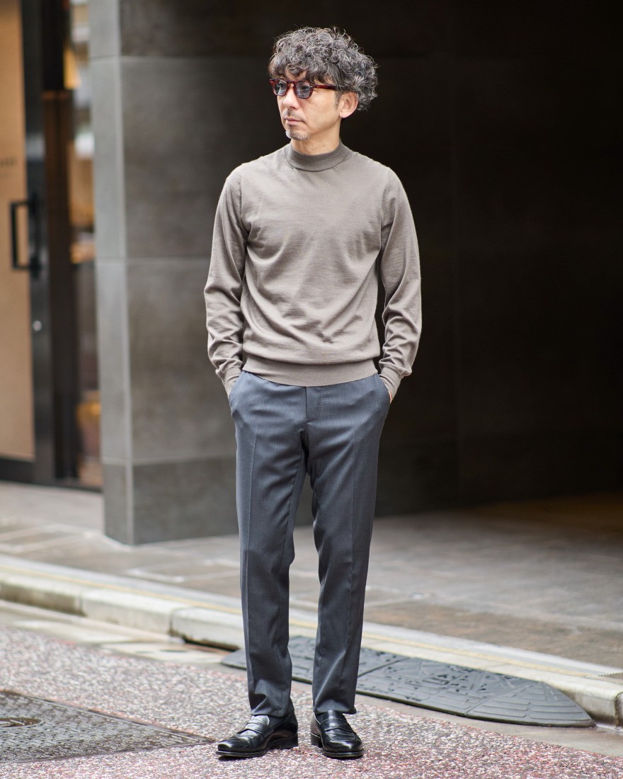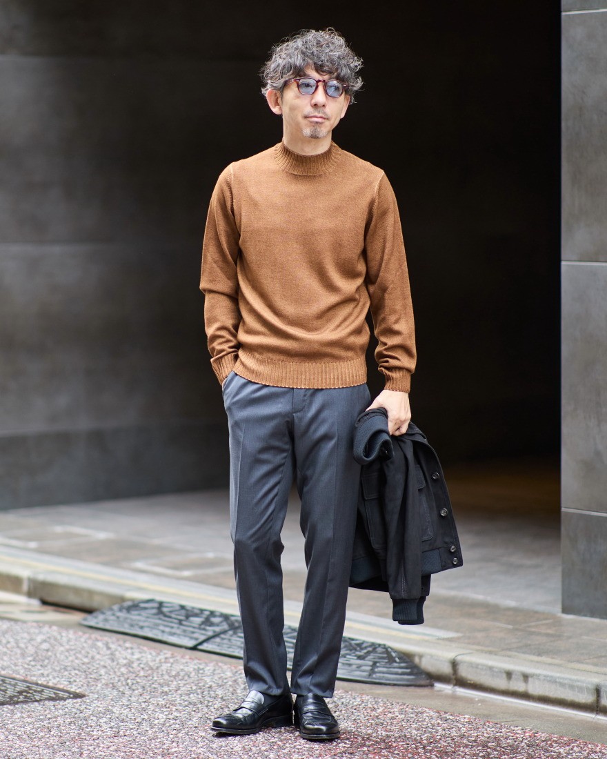 深みのあるチャコールグレーの美しいカラーはあらゆるジャケットスタイルにも合わせやすく、大人の着こなしを上品に引き立ててくれます。