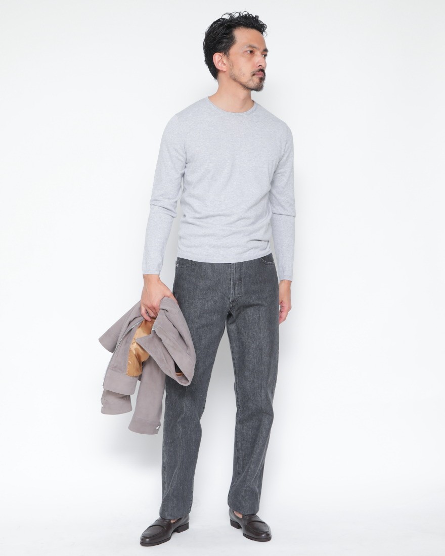 本モデルは、ウォッシュ加工が施され全体的に程よく色落ちもしており、馴染みの良さもポイントとなっております。