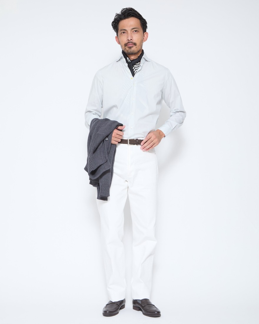 モデルサイズ:身長174cm/体重65kg/頭囲58cm/肩幅42cm/胸囲90cm/ウエスト78cm/ヒップ91cm/太もも53cm /手囲い23cm 着用サイズ:29/ホワイト