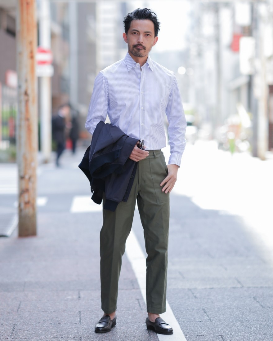 モデルサイズ:身長185cm/体重73kg/肩幅48㎝/胸囲95cm/ウエスト80cm/ヒップ96cm 着用サイズ:33