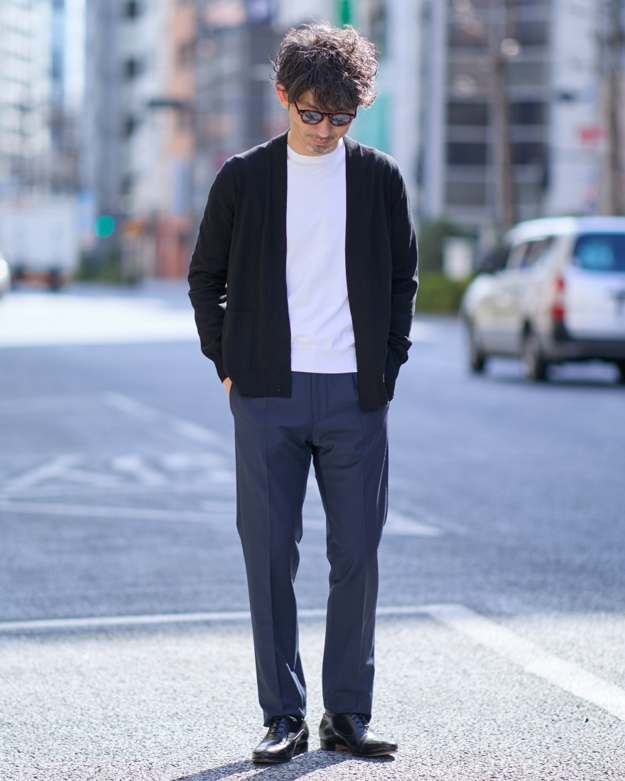 モデルサイズ:身長174cm/体重65kg/頭囲58cm/肩幅42cm/胸囲90cm/ウエスト78cm/ヒップ92cm/太もも54cm /手囲い23cm 着用サイズ:7/ブラック