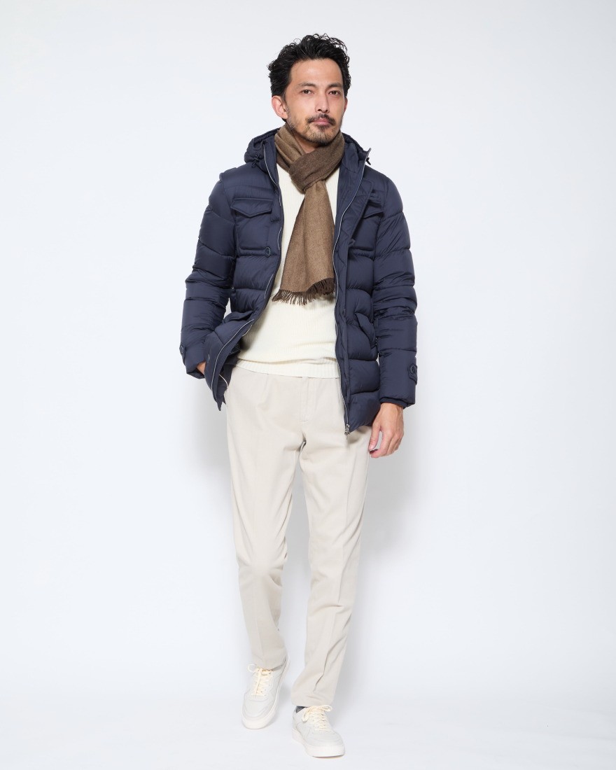 モデルサイズ:身長174cm/体重65kg/頭囲58cm/肩幅42cm/胸囲90cm/ウエスト78cm/ヒップ91cm/太もも53cm /手囲い23cm 着用サイズ:41/クリーム