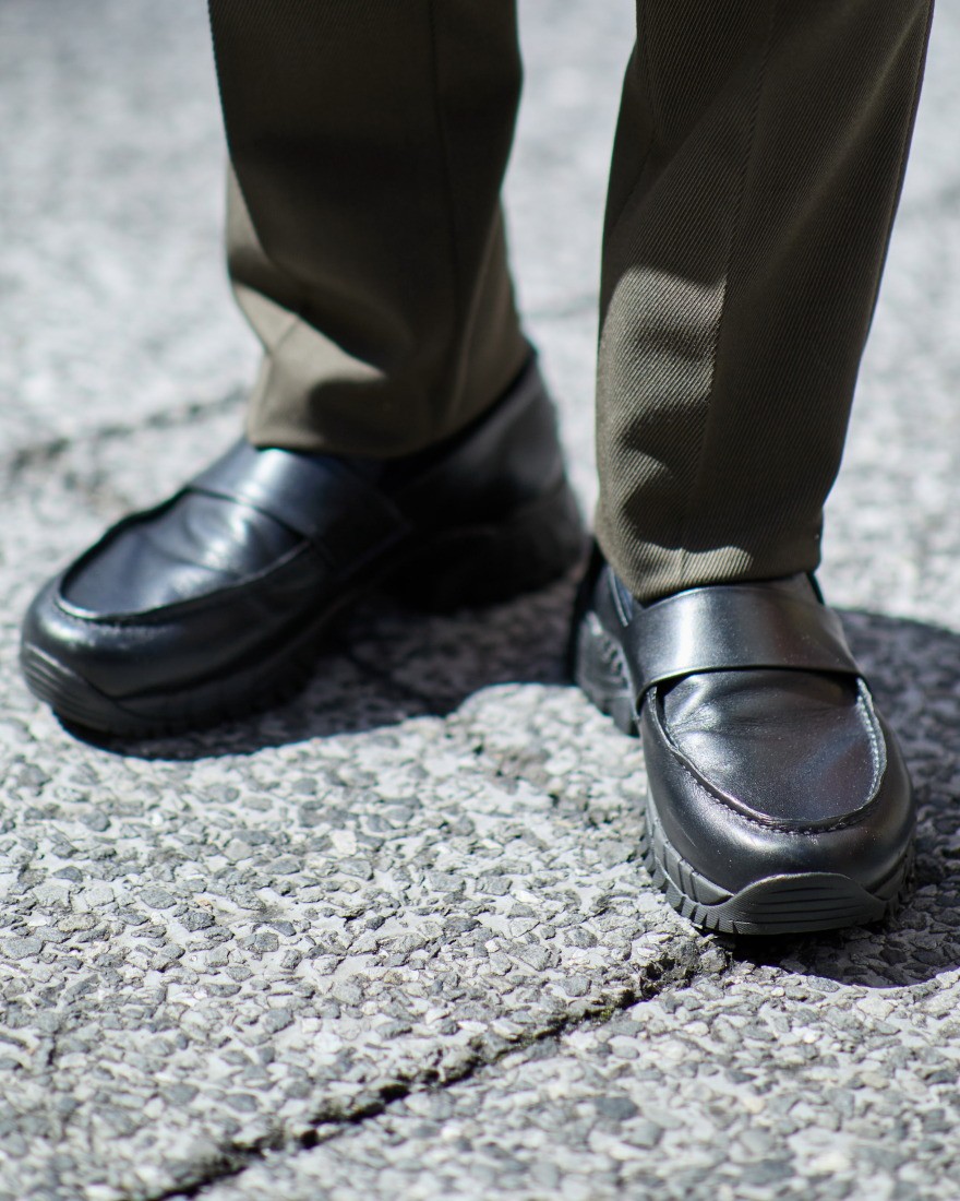 ローファーならではの上品な表情に、トレッキングソールの力強さをプラスしたそのデザインは、スーツやセットアップなどのフォーマルな装いにも相性が良く、ミニマルかつモダン。日常から旅先、シティからアウトドアまで。YOAKが提案する、流行に縛られない新たな定番の1足です。