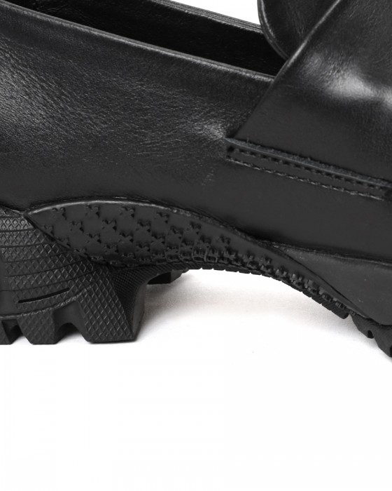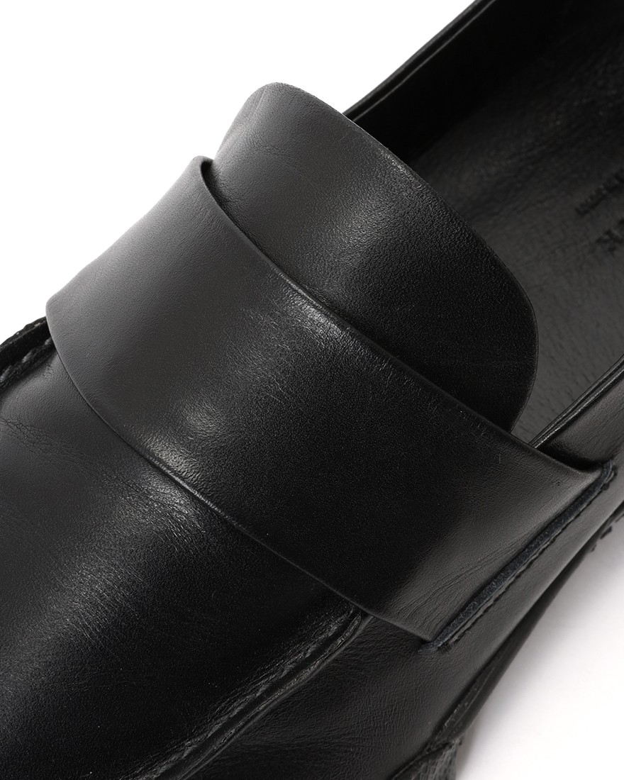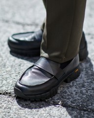 ローファーの洗練されたアッパーデザインに、トレッキング仕様の無骨なアウトソールを融合させた、実用性とデザイン性を兼ね備えたモデルです。