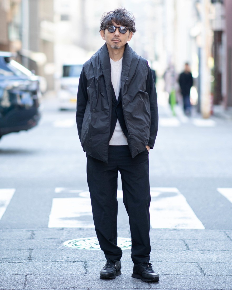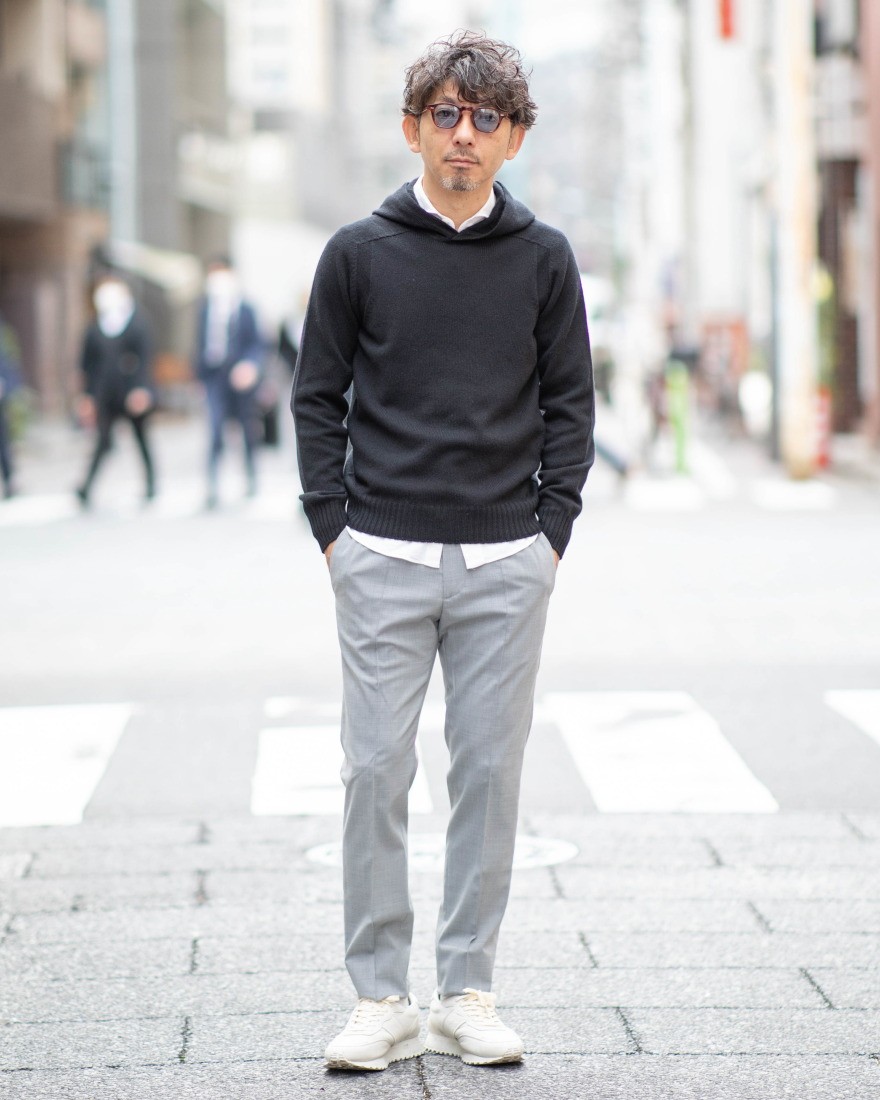 モデルサイズ:身長174cm/体重65kg/頭囲58cm/肩幅42cm/胸囲90cm/ウエスト78cm/ヒップ91cm/太もも53cm /手囲い23cm 着用サイズ:41/チャコール
