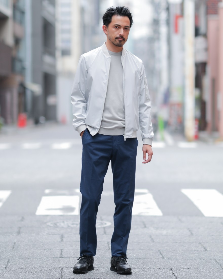 モデルサイズ:身長174cm/体重65kg/頭囲58cm/肩幅42cm/胸囲90cm/ウエスト78cm/ヒップ92cm/太もも54cm /手囲い23cm 着用サイズ:41/チャコール