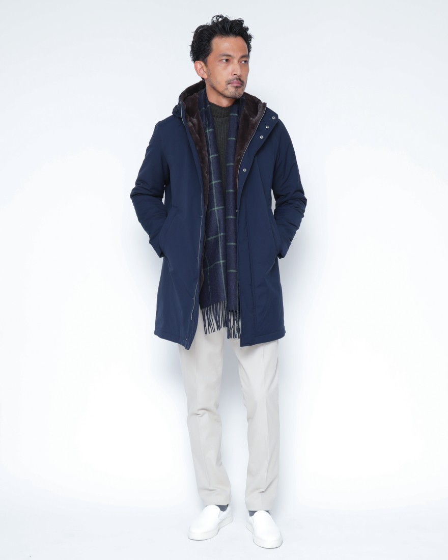 モデルサイズ:身長185cm/体重73kg/肩幅48㎝/胸囲95cm/ウエスト80cm/ヒップ96cm 着用サイズ:42/ホワイト