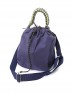 開口部のドローストリングを引っ張って開閉するとてもシンプルな作り。丸みを帯びた巾着型のフォルムに愛らしさを感じます。片手で楽に持てる小ぶりサイズなので、携帯や財布といったちょっとした荷物を入れるのに最適です。