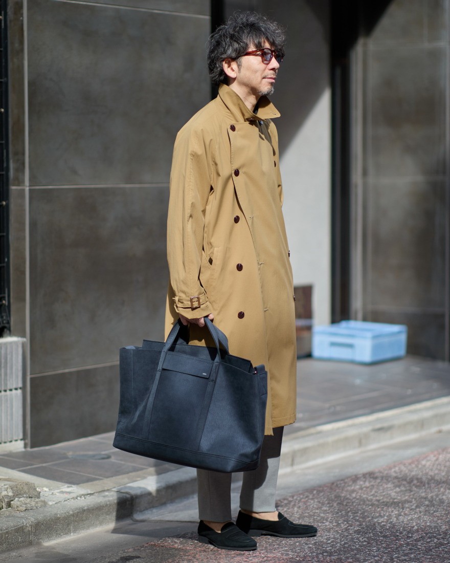 デザインの特徴としては、ピッチの異なるこだわりのハンドルや、メイン収納のトップには荷物の目隠しになるフラップとスナップボタンが付いており、機能性も充実。デイリーユースにはもちろん、旅行やジムなどにも対応する安心感あるビッグサイズなので、出張用にも最適。実用性とファッション性を兼ね備え、オールシーズン活躍します。