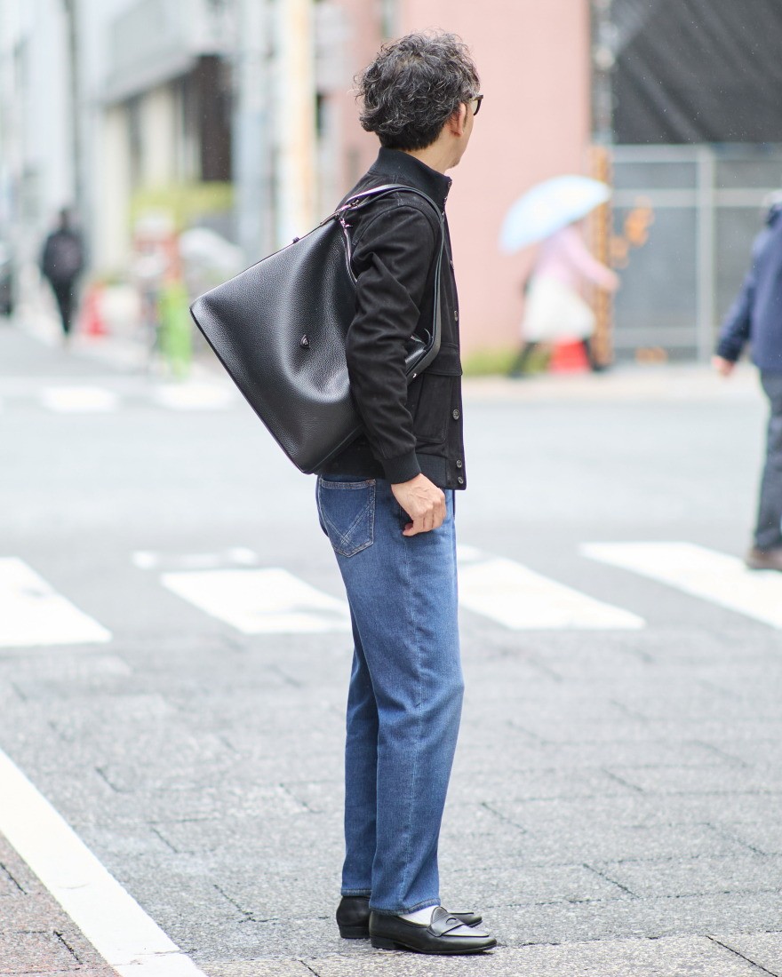 素材には程よい厚みのある上質なシュリンクレザーを採用。艶やかな光沢と表面感を持つ滑らかな風合いが、ラグジュアリームードを漂わせる一方、どこかこなれた印象を感じさせるのも魅力です。