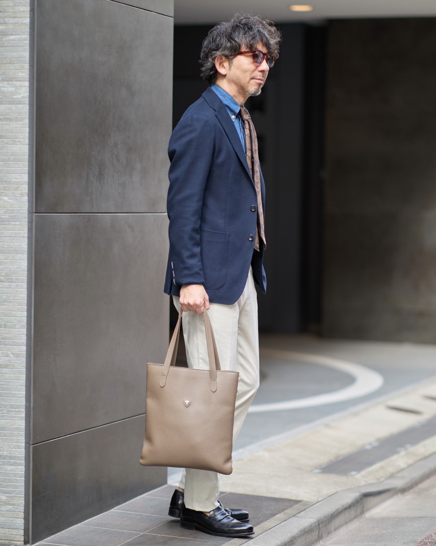 上質シュリンクレザーの艶が映える。13インチPCも収まる、スマートな大人に相応しいトートバッグ