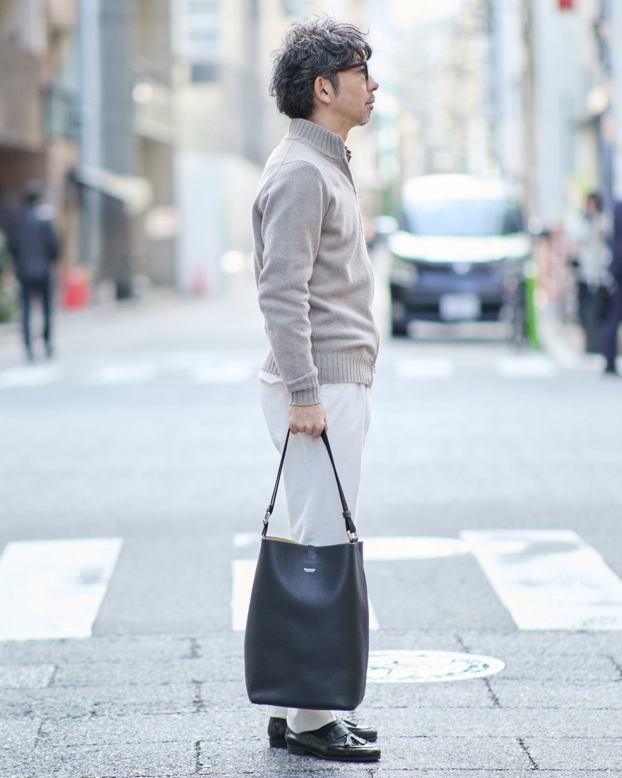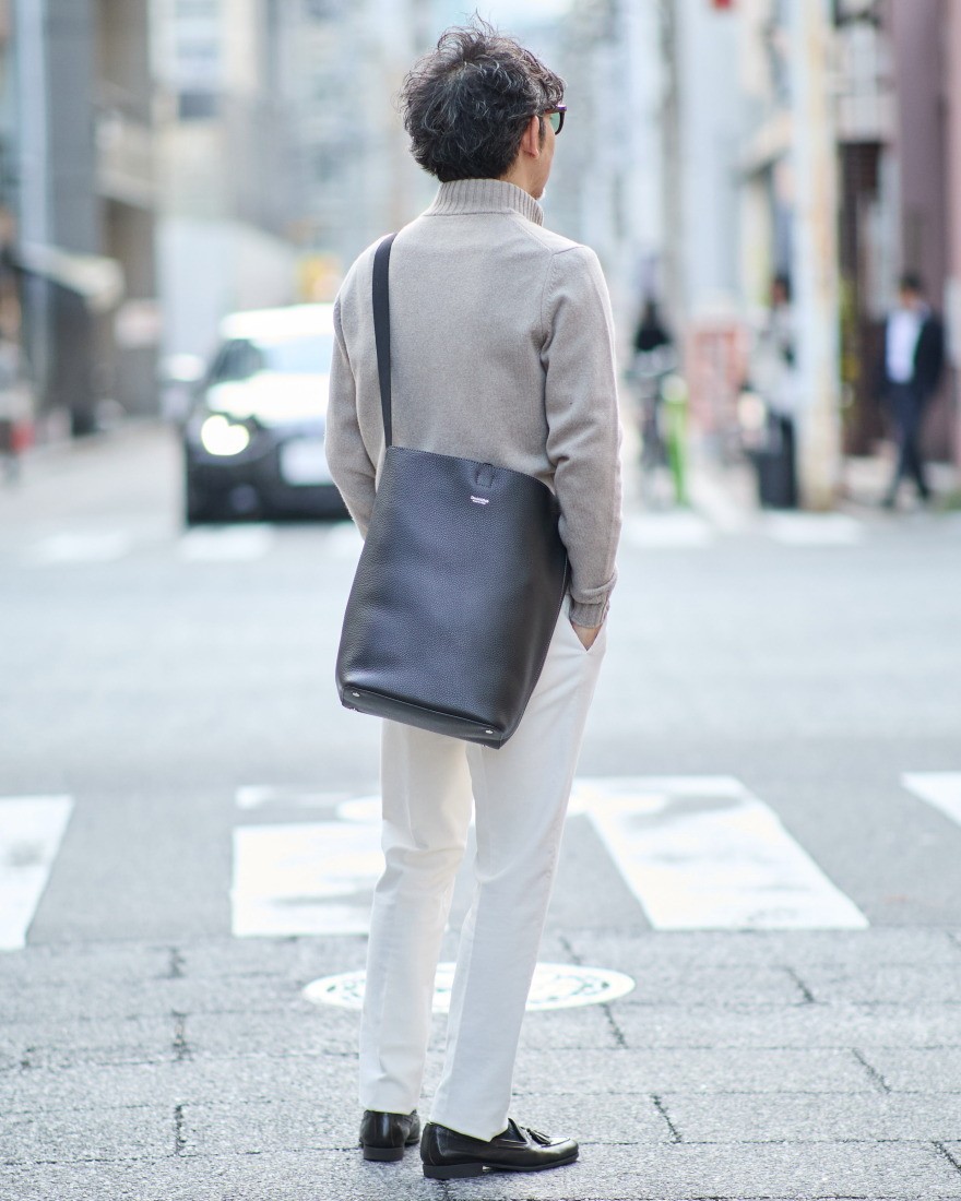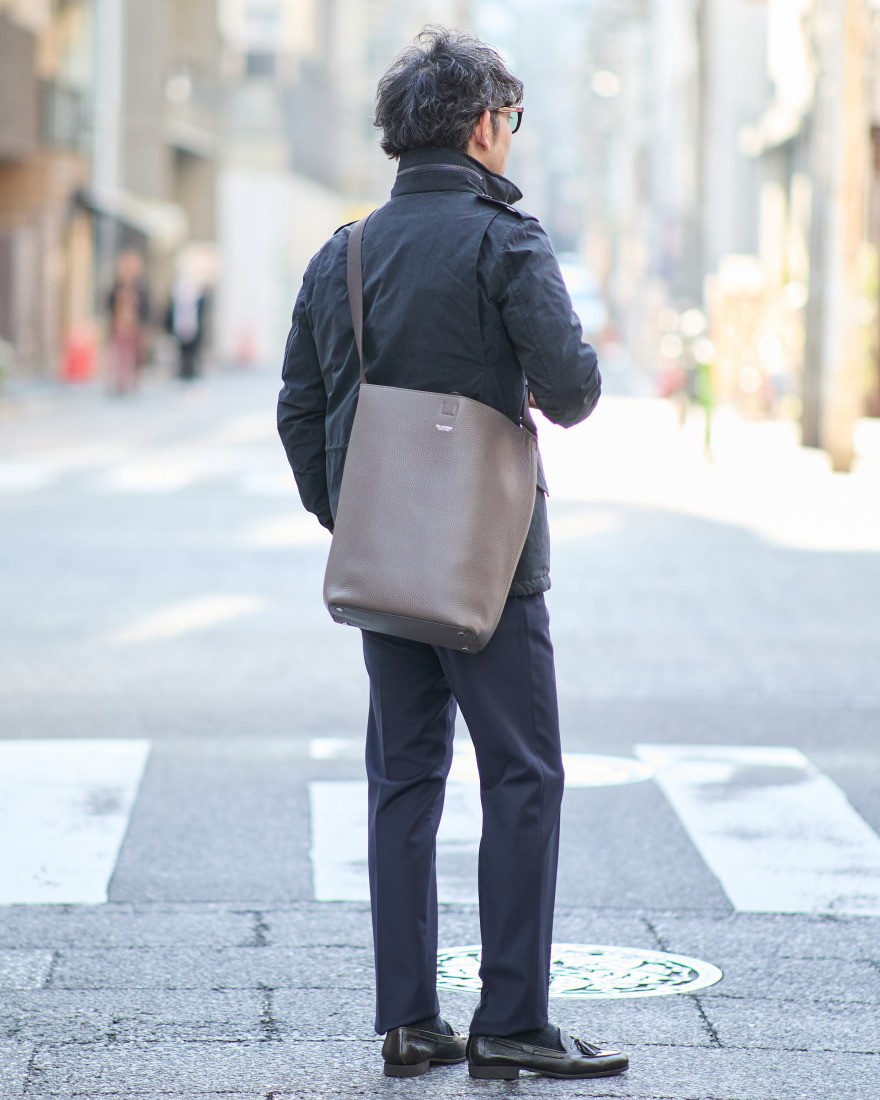 美しいフォルムを保つ、贅沢ダブルフェイスレザー。オンオフ問わず身軽に移動できるワンショルダートート