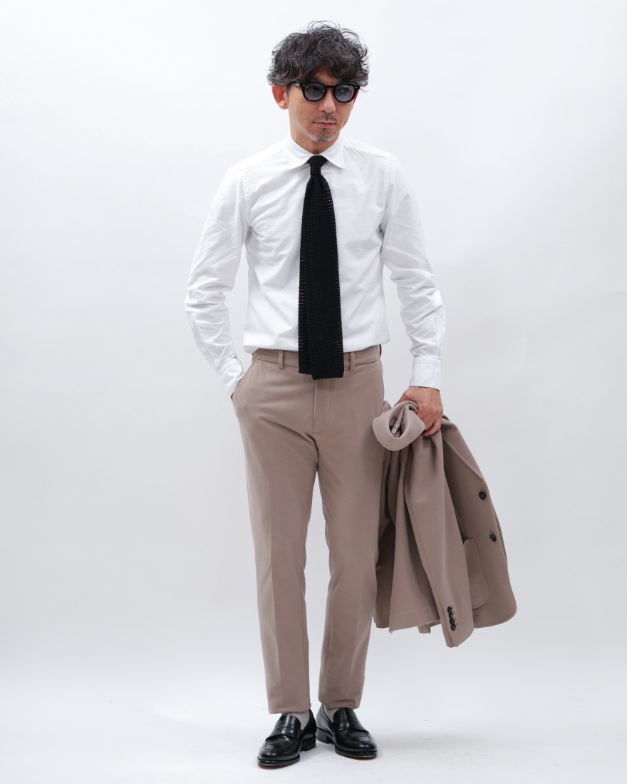 また通常のネクタイよりも太い幅に設定することにより、シンプルなニットタイに大人の洒落た遊び心とクラシックの美意識を取り入れています。