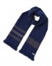 このストールは、明度の高いネイビーが顔周りに明るさを添えてくれる、美しい色合い。さらに、両サイドに異なるパターンのベージュラインをあしらうことで、軽やかさと洗練されたアクセントを加えています。
