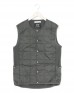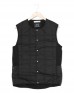 カラーによって異なる生地をチョイスしている表地は、無地タイプ(ブラック、チャコール、ダークオリーブ)ではマットな風合いの高密度リップストップ生地を、ネイティブな雰囲気漂う総柄タイプ(ダークブラウン)では美しい光沢の高密度タフタ生地を使用。いずれも撥水性を持ちます。秋春にはもちろん、冬のミッドレイヤーとしても大きな活躍が望めるオールラウンドベストです。