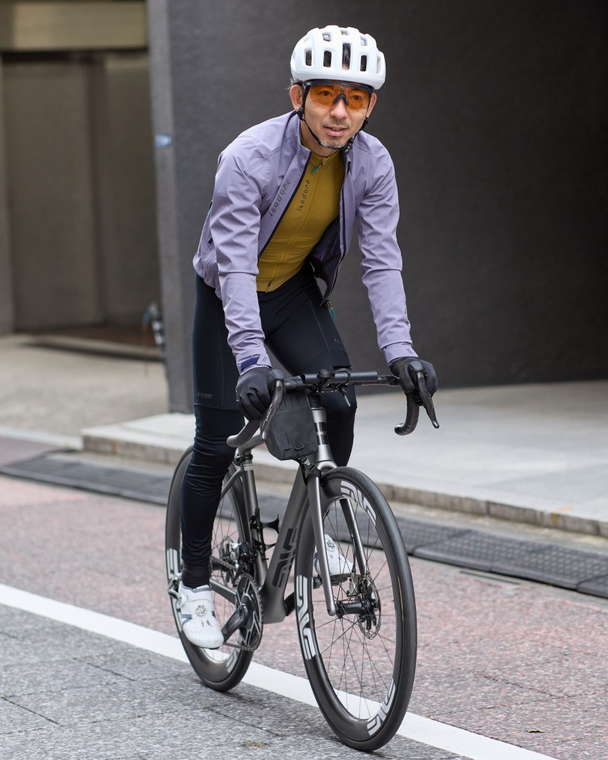 シルエットは一般的なウインドジャケットよりもやや絞られ、強い風でもバタつきを抑制。