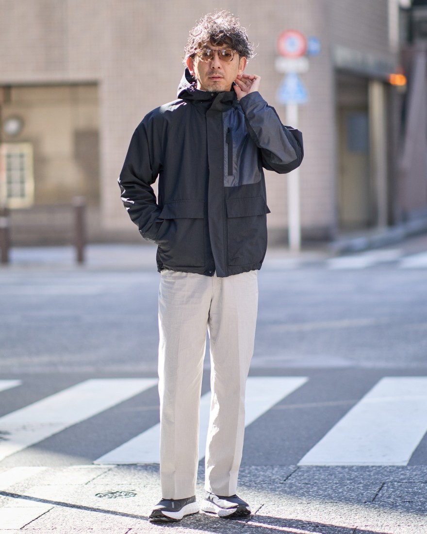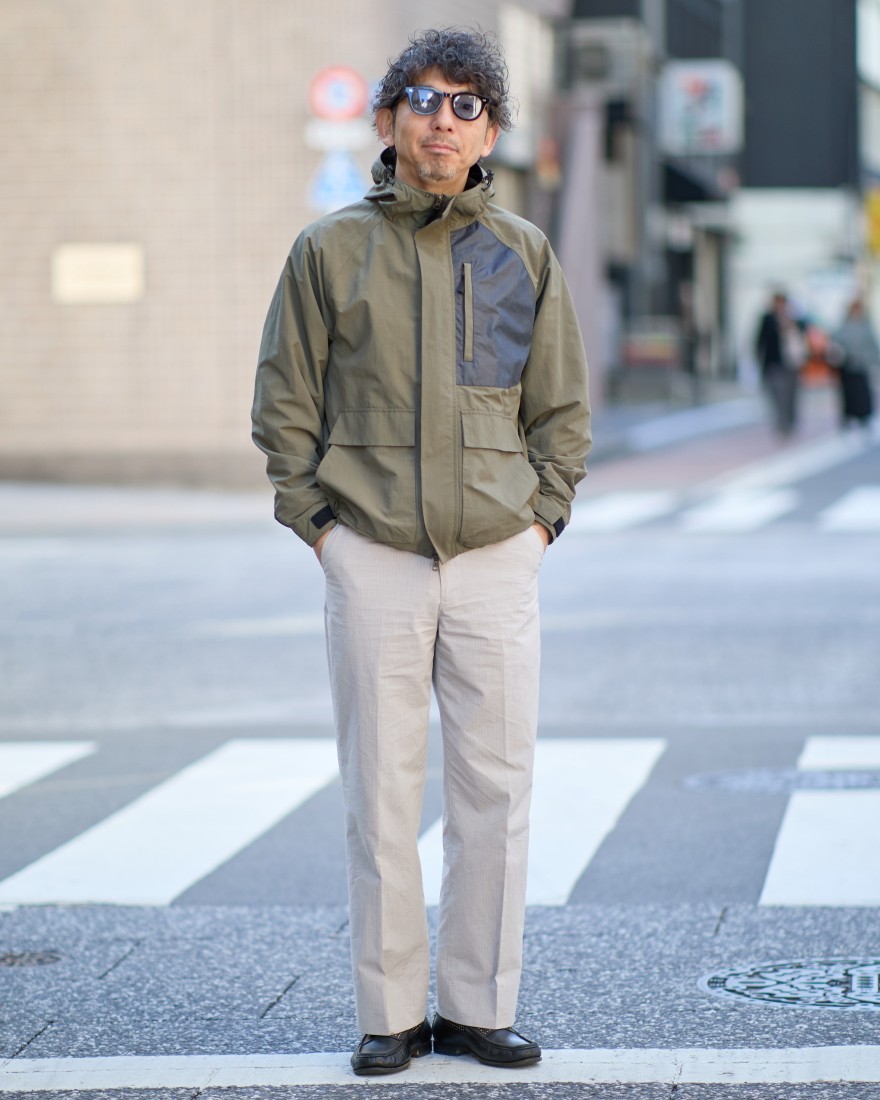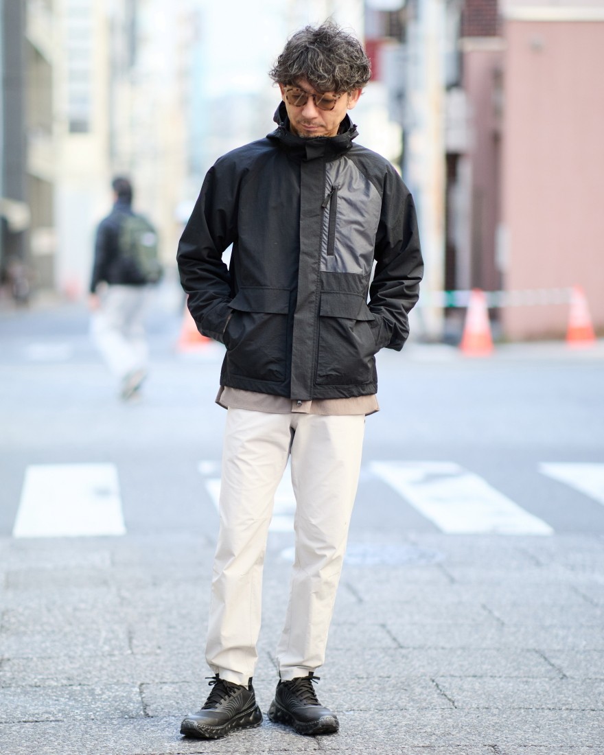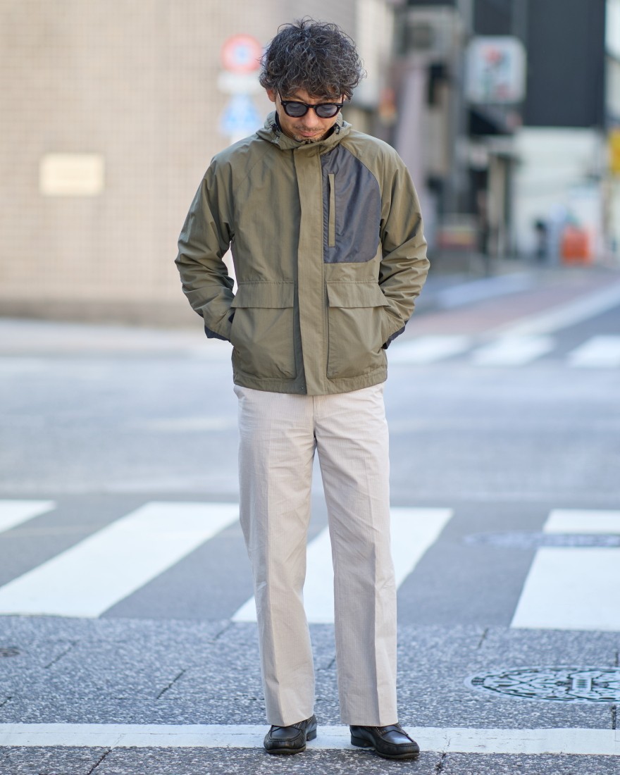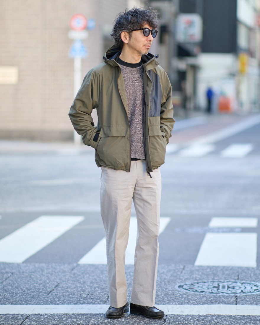 また、パッチ部分や袖には上品な光沢を放つオイルド調素材を配し、異なるテクスチャーが互いを引き立て合う絶妙なバランスを構築。高機能アウターでありながら、街に馴染むヴィンテージライクな佇まいを演出しています。