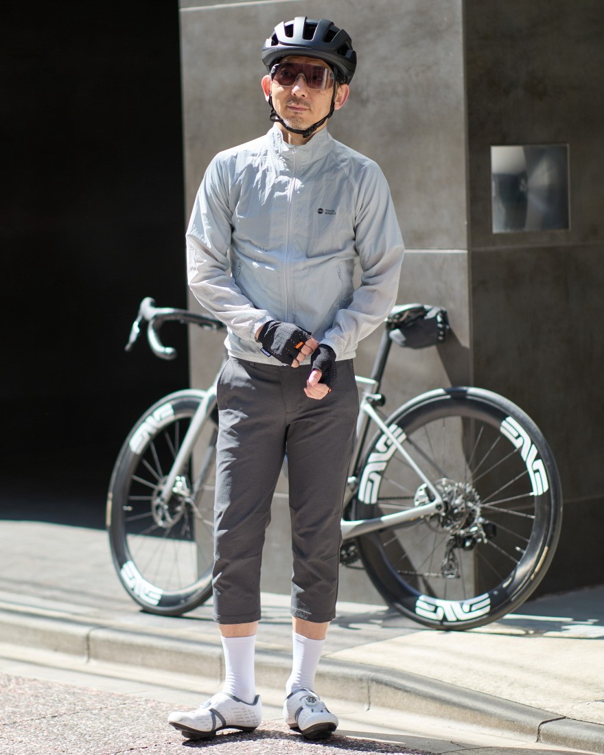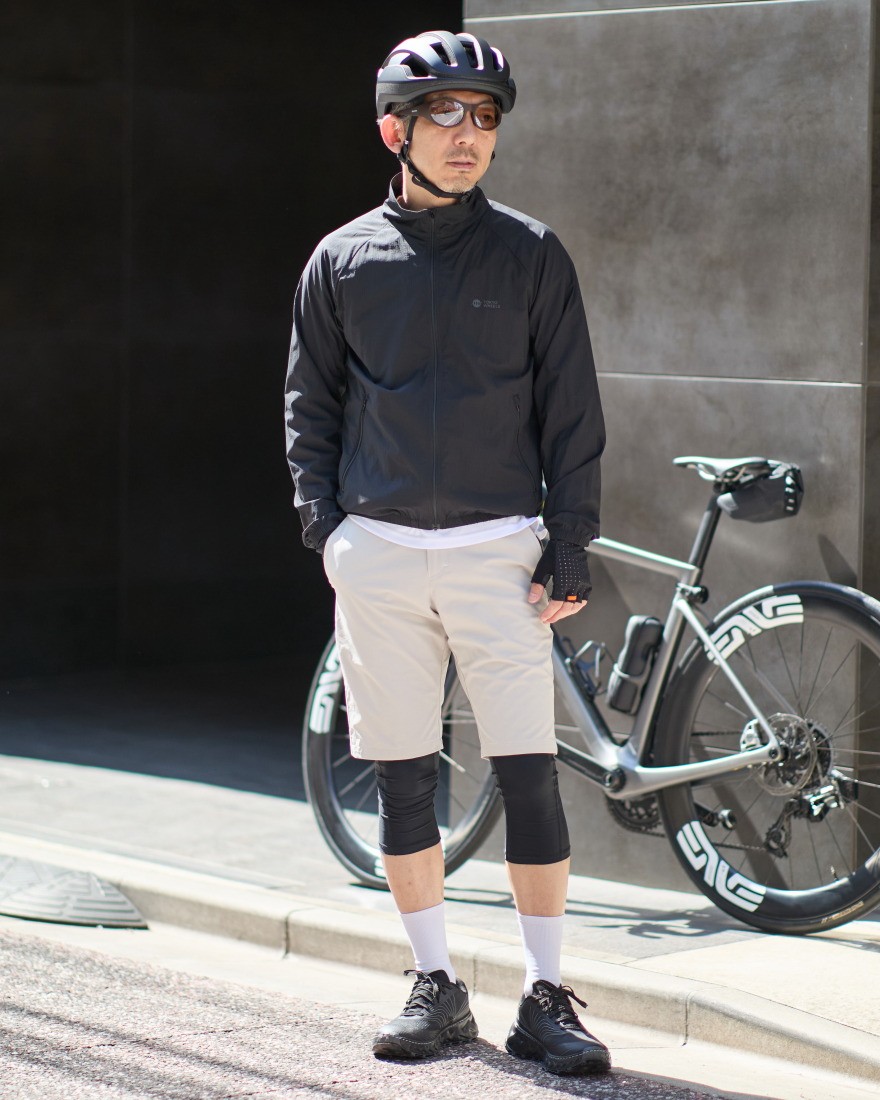 自転車やランニングといったアクティブシーンはもちろん、季節の変わり目のライトアウターとしても活躍する一着です。無駄を削ぎ落としたミニマルなデザインにより、日常のスタイリングにも自然に溶け込みます。