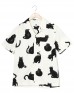 シャツ一枚一枚、黒猫の居場所が変わるのもポイント。お手元に届くまで、どんな黒猫がどんな位置で遊んだり、くつろいだりしているのか分からない、一期一会の出会いを楽しんでいただきたい一着です。もちろん、程度にゆったりとしたボクシーなシルエットやバックポケットなど、定番のディテールもしっかり備わっています。