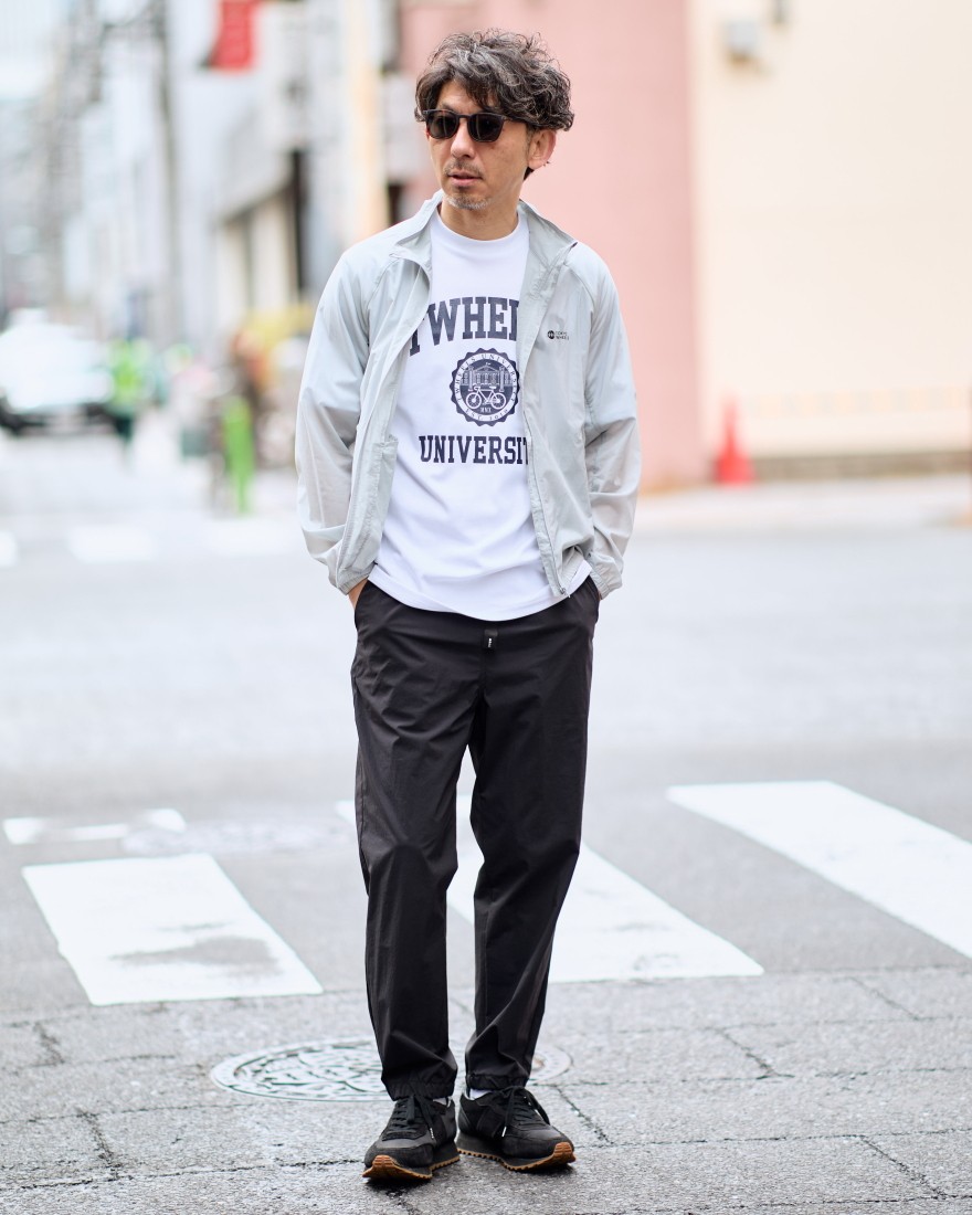 コットン×ポリエステルの機能生地で仕立てた、TOKYO WHEELSのオリジナルプリントTee。