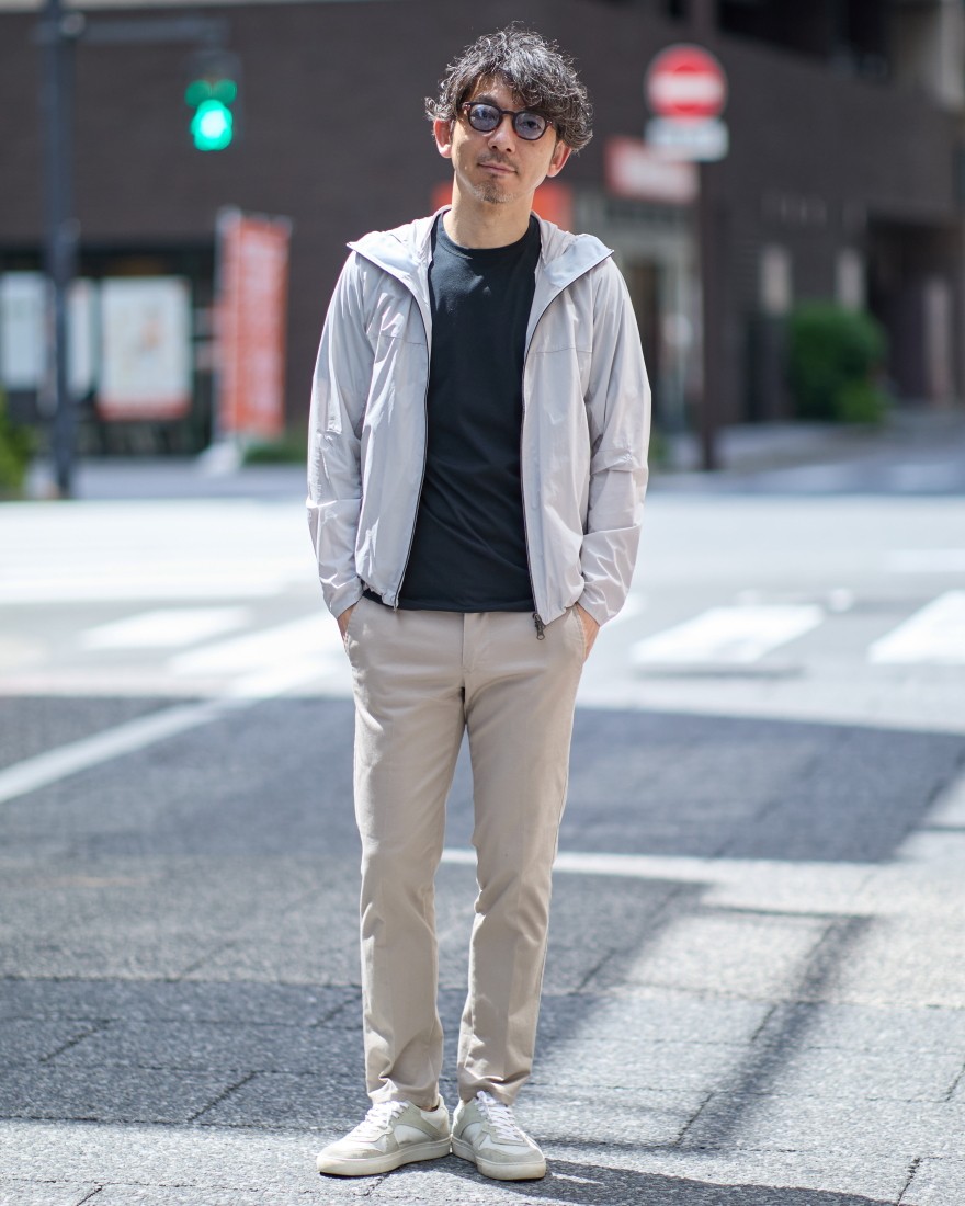 コットンベースのストレッチ生地で、抜群のストレッチ性とキックバック性があり、サラッとした生地感が特徴。また、ちょうどよい生地の厚さにも注目。厚すぎず、薄すぎずの絶妙な厚さで肌馴染みも良く、幅広いシーズンで快適に過ごせます。