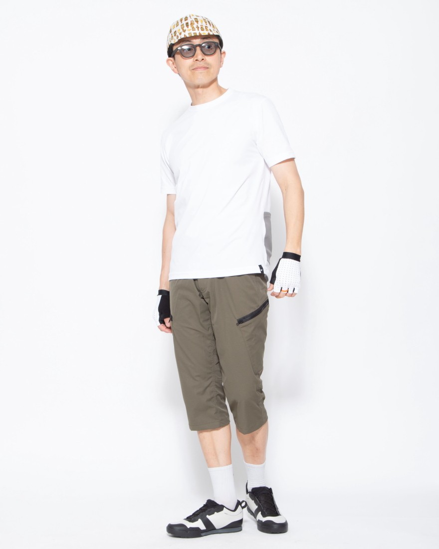 モデルサイズ:身長178cm/体重65kg/頭囲59cm/肩幅43cm/胸囲94cm/ウエスト75cm/ヒップ90cm/太もも53cm/手囲い24cm 着用サイズ:L/白ビール