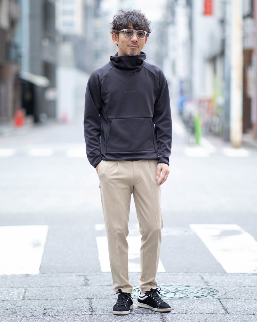 モデルサイズ:身長174cm/体重65kg/頭囲58cm/肩幅42cm/胸囲90cm/ウエスト78cm/ヒップ91cm/太もも53cm /手囲い23cm